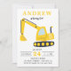 Convite de festas do Aniversário de criança de Construção da Escavadora de Corte