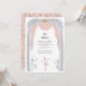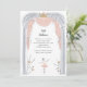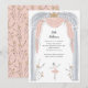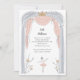 Balé adorável, convite de festas de meninas com tema apresentando uma doce ilustração de uma bailarina em um tutu dançando em palco em uma rosa claro, prata e paleta dourada.