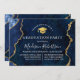 Convite para Festa de formatura de Geodo de Águas Elegante Azul e Dourado Marble Agate. Script de caligrafia de tendências. Boné de Formando Dourado.