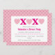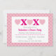 Cartões de convite cor-de-rosa bonito para o seu Partido Dia de os namorados. Ame corações e beijos através do topo. Abaixo estão modelos para adicionar seus detalhes. O fundo é rosa com um padrão de pequenos corações cor-de-rosa.