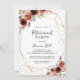 Este convite de festas de aposentadoria de primavera de brilho geométrico é perfeito para uma simples celebração de aposentadoria. A design apresenta flores lindas, pintadas à mão, cor-de-rosa, esbranquiçadas, vermelhas, azuis e burladas, juntamente com folhagem verde, que enfeitam uma estrutura geométrica de ouro brilhante.