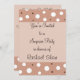 Um convite moderno para uma festa surpresa. Bolinhas brancas e de chocolate em tamanhos variantes em fundo rosa/esticado. Elegante mas simples. Perfeito para aniversários ou eventos surpresa.
