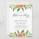 Convide convidados para o seu evento com este convite de festas de aposentadoria do tema cítrico. Apresenta ilustrações aquarelas de toranjas, clementinas, florais e verde. Este convite aos citros será perfeito para o tema dos citros e festas de verão. Personalize adicionando os detalhes do evento.