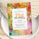 Um Convite de festas aniversário de 21 anos com tons de cor abstrato brilhante, formas e pingos de tinta em vermelho, amarelo, verde, azul, magenta, rosa e aqua. O design é cheio de energia e exude uma vibração feliz para preparar seus convidados para uma celebração divertida. Personalize o modelo de texto com os detalhes do seu partido. Este convite pode ser solicitado como download digital impresso e sem papel para sua conveniência.