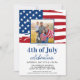 EUA American Flag 4 de julho Convites de festas. Convide amigos e família para a sua festa patriótica de quarta de julho com estes convites modernos da bandeira americana. Personalize este convite da bandeira americana com o seu evento, nome, fotografia e detalhes da sua festa. Veja nossa coleção para combinar presentes, favoritos para festas e suprimentos patrióticos no dia 4 de julho. COPYRIGHT © 2021 Judy Burrows, Black Dog Art - Todos Os Direitos Reservados. American Flag Family Foto 4 de julho de Convite de festas