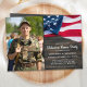 Militares Patrióticos da Bandeira Americana são bem-vindos aos convites domiciliários. Convide amigos e familiares para seus soldados darem boas-vindas ao partido de casa com este convite militar patriótico da bandeira dos EUA. Bandeira americana design em madeira russa escura. Este convite militar de boas-vindas ao lar também é perfeito para convites militares de aposentadoria ou soldados indo embora de convites de festas, mudar de lugar na personalização. Veja a nossa coleção para receber presentes, favoritos para festas e suprimentos militares. COPYRIGHT © 2021 Judy Burrows, Black Dog Art - Todos Os Direitos Reservados. Convite de boas-vindas a casa do Partido Americano de Bandeiras