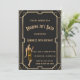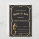 Este convite estilo de 1920 da classe apresenta os detalhes editáveis do evento cercado por um quadro de deco de arte dourada. Na parte inferior direita está uma mulher com um vestido de batente. No verso há um campo editável para detalhes adicionais. Você pode alterar o tamanho, a cor e o estilo da fonte, bem como as cores de fundo em ambos os lados. Este convite versátil pode ser usado para aniversários, aposentadorias etc. Aproveite o seu novo Convite de festas de aniversário de 20 anos do Roaring 20!