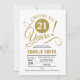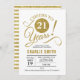 Convite de festas aniversário de 21 anos em falso brilho Dourado e branco. Alegra-me a 21 anos! Design elegante do estilo de tipografia moderna. Pode ser personalizado em qualquer idade. Envie-me uma mensagem se precisar de mais personalização.