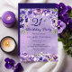 O violeta púrpura elegante viola o design de "Partido aniversário de 21 anos" do design floral, apresentando um trecho floral de violetas, de cima e de baixo, sobre um fundo de violeta e poeira branca angustiados.
