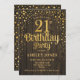 Convite de festas aniversário de 21 anos. Design elegante em ouro falso brilhante e padrão de madeira rústica de madeira escura. Possui fonte de script na moda e confetti. Envie-me uma mensagem se precisar de idade personalizada.