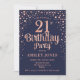 Convite de festas aniversário de 21 anos. Design de Elegante no marinho e ouro de rosa brilhante falso. Possui fonte de script na moda e confetti. Envie-me uma mensagem se precisar de idade personalizada.