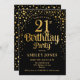 Convite de festas aniversário de 21 anos. Design elegante em ouro preto e brilhante. Possui fonte de script na moda e confetti. Envie-me uma mensagem se precisar de idade personalizada.