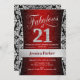 aniversário de 21 anos Convite de festas em preto vermelho e prata. Cartão de convite elegante com prata brilhante falso e diamantes. Apresenta cor damasco e fonte de script. Fabuloso aos vinte e um! Design clássico perfeito para uma festa de na moda. Envie-me uma mensagem se precisar de uma idade personalizada.