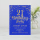 Convite de festas aniversário de 21 anos. Design elegante em azul real e ouro brilhante falso. Possui fonte de script na moda e confetti. Envie-me uma mensagem se precisar de idade personalizada.