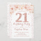 aniversário de 21 anos convite de festas para mulheres. Cartão de convite elegante em cor rosa-claro, branco e ouro-reluzente brilhante rosa. Apresenta fontes de script de tipografia, rosas e letras de diamante. Perfeito para comemoração de na moda.