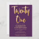 Introduzindo um novo convite de festas moderno e elegante, fundo simples de ameixa roxo, com letra dourada, texto tipográfico "vinte e um". Personalize esta placa de modelo, adicionando as informações de sua própria parte.