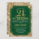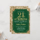 Convite de celebração de aniversário de 21 anos surpresa. Design elegante em verde-escuro da floresta e padrão de ouro brilhante. Apresenta uma fonte elegante de script. Envie-me uma mensagem se precisar de mais personalização.