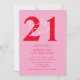 Celebre em estilo com nosso moderno Convite de festas rosa e aniversário de 21 anos vermelho! Apresentando uma ousada mistura de tons rosas e vermelhos, este convite chico dá o tom perfeito para uma celebração sofisticada e divertida. A tipografia elegante e os sotaques de na moda fazem dele uma forma atraente de convidar seus convidados para o seu evento de marco. Personalize-o com os detalhes do seu partido para criar um convite exclusivo e memorável que reflita a sua personalidade. Ideal para aqueles que querem uma mistura de talento moderno e elegância, este convite deixará uma impressão duradoura para os seus convidados!