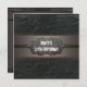 Couro preto masculino, etiqueta de metal em apuros e parafusos de rebite, 30º convite de aniversário.