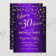 aniversário de 30 anos convite de festas para mulheres ou homens. Cartão de convite para roxo e ouro legante com fonte de script e confetti. Saúde para 30 anos! Perfeito para uma celebração de aniversário de na moda.
