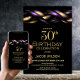 Convites Partido aniversário de 30 anos Dourado Roxo Negro