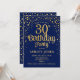 Convite de festas aniversário de 30 anos. Design elegante em azul marinho e ouro brilhante falso. Possui fonte de script na moda e confetti. Envie-me uma mensagem se precisar de idade personalizada.