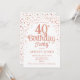 Convite de festas aniversário de 40 anos. Design elegante em cor rosa, branco e brilhante rosa de ouro. Possui fonte de script na moda e confetti. Envie-me uma mensagem se precisar de idade personalizada.