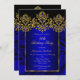 Festa Elegante de aniversário de 40 anos da Seda, joias azuis. Dourada Festa de aniversário de imagens pretas. Você pode mudar a idade! Personalize com seus próprios detalhes.
