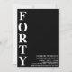 Este convite para fotos do tipo aniversário de 40 anos Bold dos homens modernos é perfeito para celebrar o homem na sua vida que está fazendo quarenta anos. A palavra "quarenta" está em uma fabulosa fonte boné em branco e preto. Você escolhe a foto que torna este convite exclusivo para seu convidado de honra. Os modelos são muito fáceis de usar e leva apenas um minuto para digitar suas informações e carregar uma foto favorita e ver seus fabulosos convites para aniversário de 40 anos.