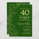 Convite de festas Dourado de Surpresa Verde Floral. Design minimalista moderno com sotaques botânicos e letra de escrita tipográfica. Simples cartão de convite floral perfeito para uma festa surpresa na moda. Pode ser personalizado para qualquer idade.