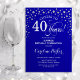 Convite de festas de aniversário de 40 anos surpresa. Design elegante em azul real e prata brilhante falso. Apresenta a fonte do script e os diamantes confetti. Saúde para 40 anos! Envie-me uma mensagem se precisar de mais personalização.