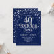Convite de festas aniversário de 40 anos. Design elegante em azul marinho escuro e prata brilhante fraca. Possui fonte de script na moda e confetti. Envie-me uma mensagem se precisar de idade personalizada.