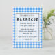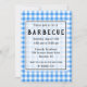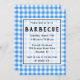 Os convites de festas do CHURRASCO com um guingão azul rústico modelam o fundo. Personalize com seus detalhes do partido do quintal para uma reunião enchida divertimento da família.