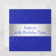 Todos os eventos, celebrações, anúncios e convites de festas de aniversários. Apropriado para todos os aniversários e eventos da idade. Rsvp está disponível em cima do pedido no estilo similar. Na moda bonito fundo azul elétrico gravado do teste padrão de Paisley do metal com guarnições brancas de prata do cetim e texto branco. Mude o estilo e o tamanho do texto com personaliza.