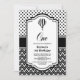 Convide seus amigos e entes queridos com este convite de festas de balão de ar quente preto e branco que está decorado com bolinhas e faixas de diafragma.