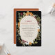 Um design chic com florais focalizados, com um cabeçalho que diz " família, amigos, peru e muitas tortas" inclui um modelo nas costas para uma mensagem extra para amigos e familiares.