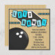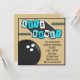 Compartilhe as notícias da festa de aniversário de uma criança com este convite de boliche legal, divertido e brilhante. Excelente convite quadrado para crianças de todas as idades. O chá, o aqua e as letras azuis soletram o Vamos Bowl contra um diamante preto. O fundo foi projetado para se parecer com o chão bronzeado de uma beco de boliche. Entre em contato comigo para obter cores personalizadas.