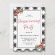 O convite de festas branco do Housewarming do preto da xadrez da verificação do búfalo é a maneira perfeita de convidar seus convidados a apreciar sua casa nova. Caracterizando um búfalo preto e branco popular verifique o teste padrão e as bagas vermelhas, este convite rústico têm a rotulação da escova e a abundância do espaço para seus detalhes do partido. Personalize clicando "personalizam-no"!