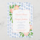 Convites Partido Chá de casamento Azul E Branco, Pêssegos b