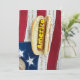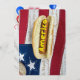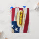 Cachorro quente na bandeira americana com beisebol para o CHURRASCO de 4 de julho