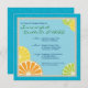 Diga aos seus convidados para trazer a diversão para a sua próxima festa de verão. Círculos de limões, limões e um quadro laranja, seus detalhes personalizados nesse convite de festas brilhante. A borda escalpada em bege de areia e azul-turquesa sugere a margem do mar, especialmente em cima de uma marca d'água de um padrão floral hawaiano. Disponível com produtos correspondentes.