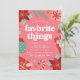 Convites Partido Coisas Favoritas do Feriado Rosa Colorido