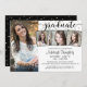 Convite de festa de formatura moderno com 4 fotos e tipografia elegante de script de caligrafia acentuado com dourado confetti. ASSISTÊNCIA: Para obter ajuda sobre modificação/personalização do design, transferência do design para outro produto ou sobre como coordenar itens, entre em contato com o designer ANTES DE PEDIR, via Chat Zazzle ou makeitaboutyoustore@gmail.com.