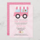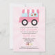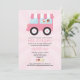 O convite de festas cor-de-rosa bonito do sorvete ilustrado com um caminhão cor-de-rosa e uma polca bonito do sorvete pontilhou cones do sorvete. O ideal para a festa de aniversário ou o verão da menina parties para miúdos. Personalize-o com nome da criança. Fundo no teste padrão de bolinhas do rosa quente e do branco. Alguns elementos por ZenwareDesigns.
