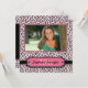 Estes anúncio/convite de festas quadrados da graduação da foto 5.25x5.25 tem um fundo modelado impressão à moda da chita do rosa preto, branco e quente. Na parte dianteira, você pode adicionar sua própria fotografia, e personaliza o nome e o ano de graduação em uma chapa do rosa quente na parte inferior. Na parte traseira, você pode facilmente personalizar a informação do partido/cerimónia.
