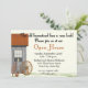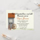 Uma casa velha de fazenda casada convida seus amigos e vizinhos a uma casa aberta para sua casa recém-renovada. O convite também pode ser personalizado para uma festa de inauguração. O cabeçalho é uma imagem e pode ser excluído e substituído por um anúncio de outra parte. Escolha um estilo de fonte, tamanho e cor.