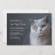 Design de festa de formatura de veterinária com uma fotografia de proximidade de um gato cinza bonito com olhos laranja. A parte de trás deste modelo casual é enfeitada com a imagem da superfície da madeira, em tons de azul. Personalize facilmente com os detalhes da sua festa de comemoração de graduação, cores e fontes favoritas.