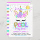 Personalize este Convite de aniversário do Unicorn Piscina Party com seus próprios detalhes.