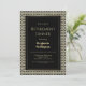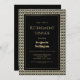 Um convite de festas janto de aposentadoria preto, branco e ouro enquadrado.