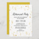 Este convite de festas de aposentadoria da Celebração Dourada é perfeito para uma elegante celebração de aposentadoria. A design moderna apresenta decorações festivas douradas sobre fundo branco, com caligrafia de cinza escura. Este convite também funciona bem para uma festa de noivado, festa de solteira ou qualquer evento ou celebração.